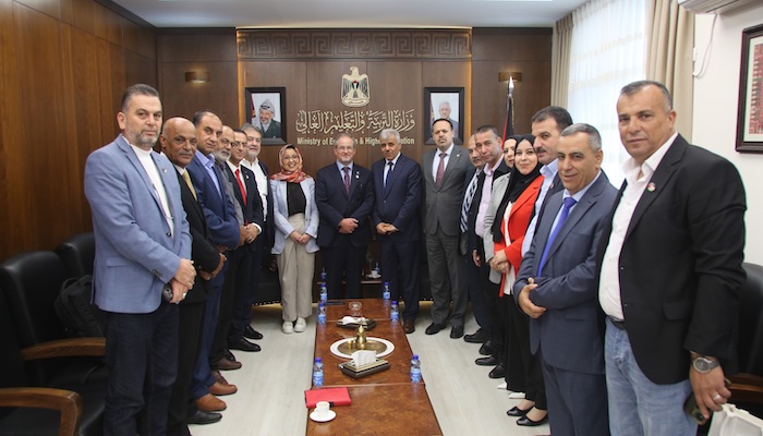 وفي سياق ذي صلة؛ التقى الوزير أ.د. برهم بوفد الدولية للتعليم والاتحاد العام للمعلمين الفلسطينيين حيث تناول عديد القضايا المشتركة والجوانب التي تهم المعلمين والمعلمات والتأكيد على دورهم الطليعي.